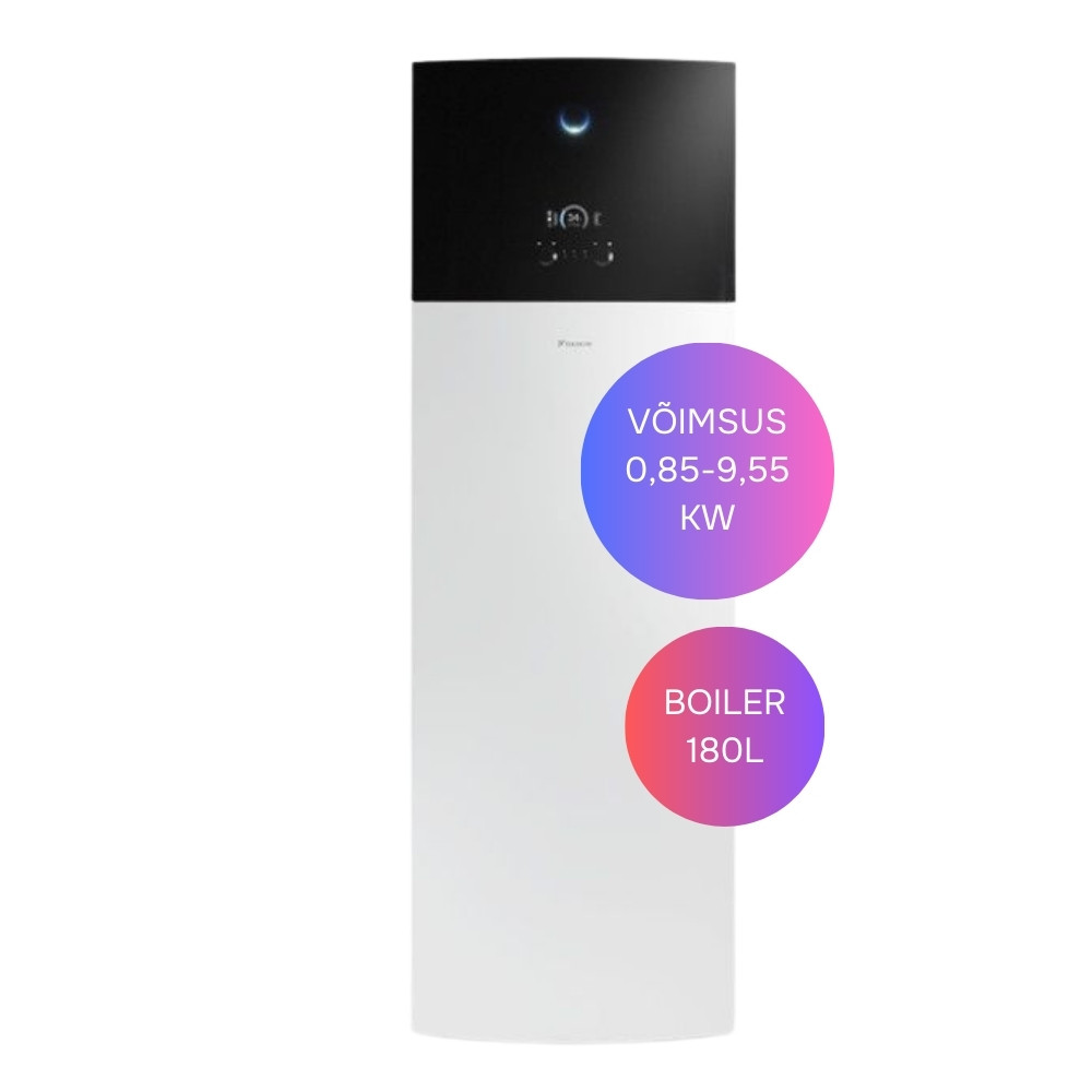 Daikinil on kvaliteetne roostevabast terasest 180L sisseehitatud boiler, mis toodab kuni 65°C sooja vett. Sellest piisab vabalt 5-liikmelise pere igapäevasteks vajadusteks, samuti ka sõpradega saunaõhtuteks või majadele, kus on vann. Maasoojuspumbaga 180L tarbevee tootmine tarbib sama vähe energiat kui tavaline 50L elektriboiler. Lisaks on sisseehitatud boiler visuaalselt puhas ja esteetiline lahendus.