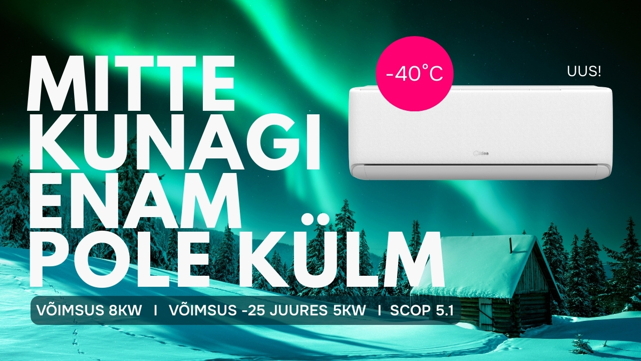 UUS! Midea Raynor on täiesti omatte klassist! See põhjamaa pakasesse arendatud seade töötab uskumatu -40 kraadini ja kütab toa soojaks ka -25 kraadiga. Super efektiivsus, erakordne küttevõimekus, tippklassi kvaliteet ja palju lisafunktsioone!