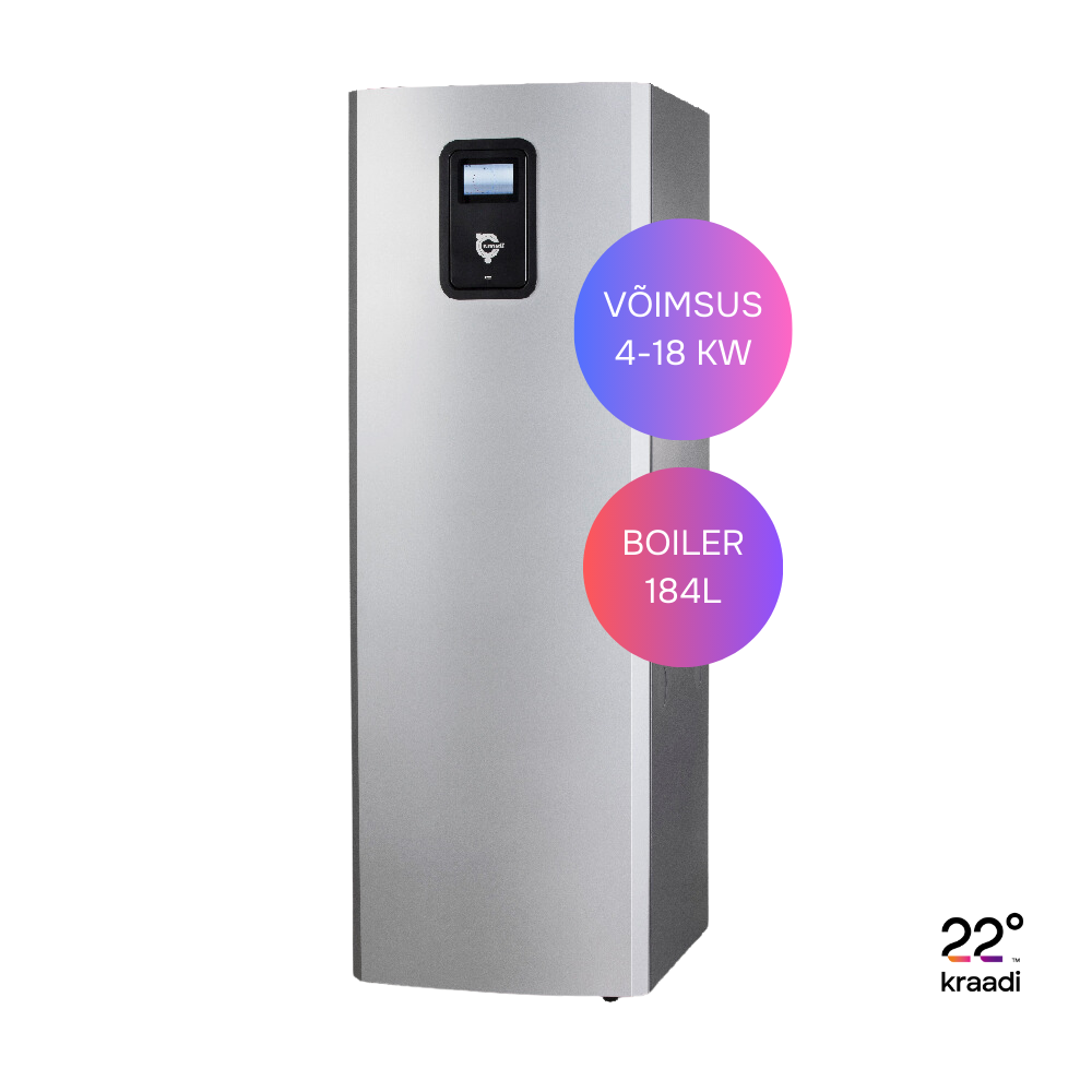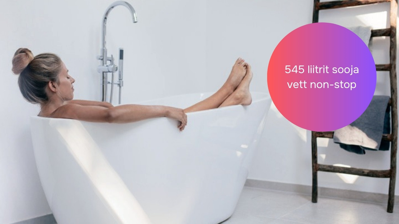 Thermia Atlas sisaldab 180-liitrist integreeritud kuumaveeboilerit, kui see peaks otsa saama, siis kulub vaid 21 minutit, et toota järgmised 184L 55°C sooja vett.